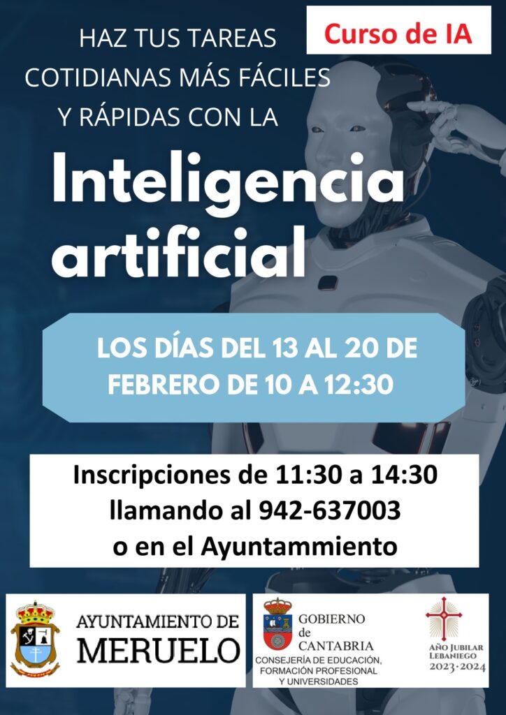 Desde el Ayuntamiento de Meruelo se ponen en marcha dos cursos de formación. Uno tiene que ver con la IA (inteligencia artificial) y el otro es de manipulador de alimentos. Cualquier interesado en estos cursos puede apuntarse de 11:30 a 14:30 llamando al 942-637003 o en el propio Ayuntammiento.