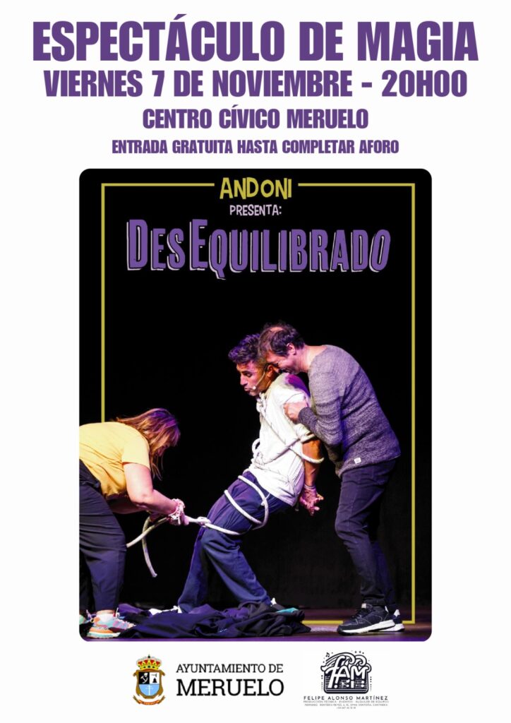 Este viernes nuevo evento cultural en el Centro Cívico Municipal con el espectáculo de magia “Desequilibrado” del mago Andoni, a partir de las 20:00 horas.