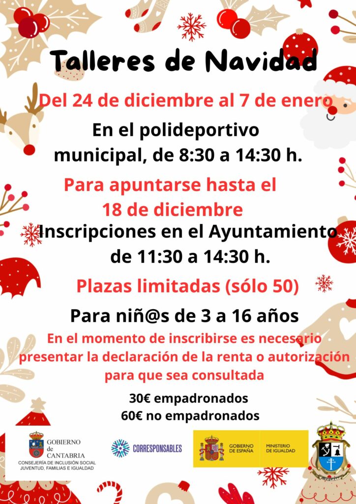 El Ayuntamiento de Meruelo ha organizado unos talleres para niños/as de cara a Navidad. Los talleres se organizan, entre otras cosas, para facilitar la conciliación de la vida laboral con la familiar. Están dirigidos a niños y niñas con edades entre los 3 y los 16 años y se van a desarrollar de 8:30 a 14:30 en el polideportivo municipal.